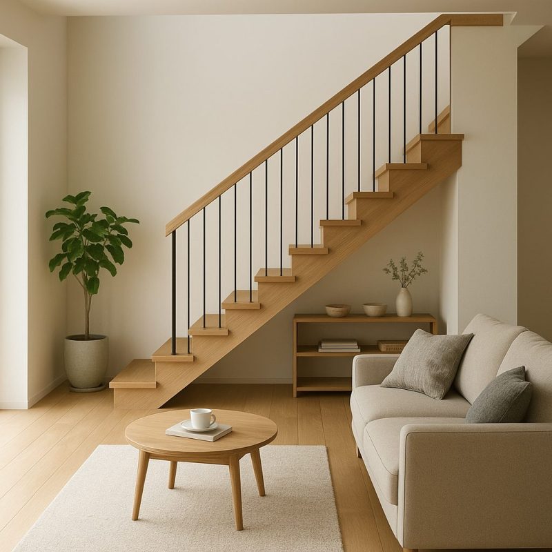 また、階段をリビングに取り込むことで空間に高さの変化が生まれ、開放的でおしゃれな雰囲気になります。デザイン次第ではインテリアのアクセントにもなり、「リビングの顔」として楽しむこともできます。